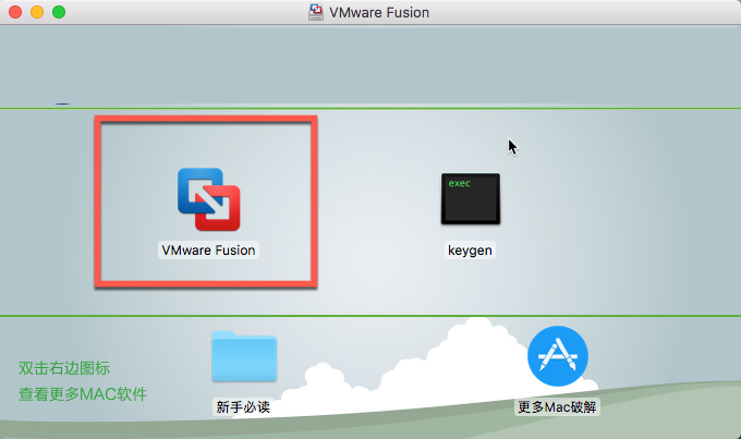 1、VMware Fusion mac 破解版软件包下载完成后打开,双击【VMware Fusion】进行安装。