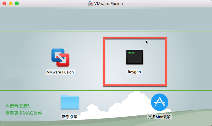 6、回到VMware Fusion mac 破解版软件包,双击打开【keygen】密钥生成器。