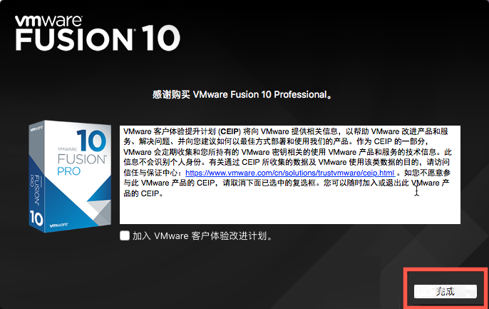10、VMware Fusion 10 for Mac 中文破解版激活破解成功,点击“完成”,大家就可以尽情使用了。