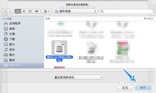 我这里以选择一个 Windows 7 的映像文件,文件名是以 iSO 结尾的,如图所示