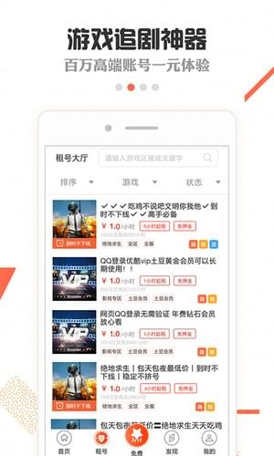 腾讯租号平台app,专业的游戏账号租赁,密文一键登录游戏,吃瓜路人秒变大神!通过腾讯租号平台app,即可畅玩吃鸡、英雄联盟、穿越火线CF、qq飞车等全民游戏账号!