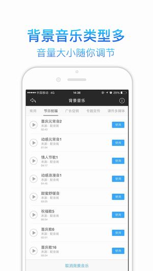 支持各种经典背景音,如小苹果、春晚序曲、江南style、安妮的仙境、广场舞歌曲等等。