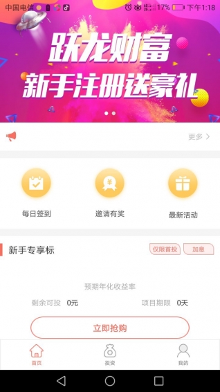 新手专享收益15%,另有好友邀请活动,新手见面礼。一大波福利红包等您来!