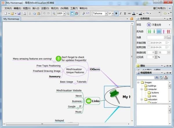 导思(MindVisualizer)是一款高效的思维导图(又称心智图或脑图,英文叫mind map)软件,作为欧美流行的可视化思维工具,导思提供了一种非凡的手段帮助您捕捉、组织、交流想法和灵感,把您脑中所想以图形化的方式展现,使您的思考更清晰,计划更可控,展示更直观,极大的提高了您的工作效率和学习效率,更能激发灵感,使您创意无限!【功能介绍】