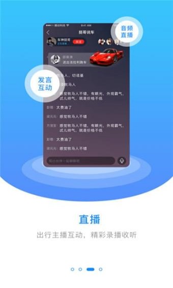 3、交通路况互动聊天室:车友可组建音频聊天室,及时解决道路拥堵、天气预报、事故通报、问路求助等,自助绿色出行。