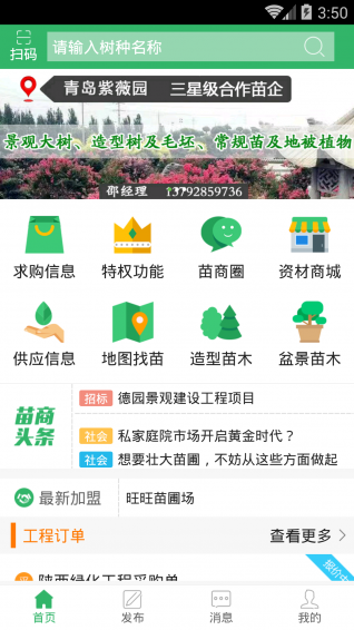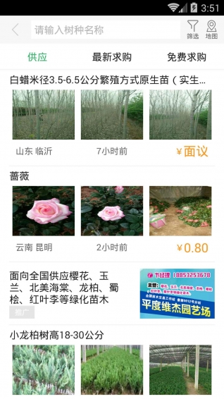 精准求购信息:“点花木”以信息精准为根本原则,完全按照行业特点设计苗木规格要求,符合工程公司采购苗木规格要求,是一款能够让采购方详细、准确、便捷、快速的录入苗木采购要求并能快速匹配苗源信息的手机软件。