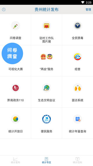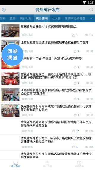 贵州统计调查与发布App,由贵州省社情民意调查中心推出,是一款集统计信息发布与问卷调查参与两大功能于一身的手机客户端。其目的在于让市民及时了解并掌握相关调查数据,便捷地参与各类问卷调查,是一款能有效推动城市建设与发展的手机应用。