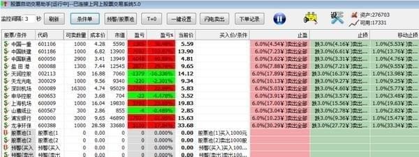 2.基本的交易功能,像止盈止损,跟踪止损,移动止损,冲高回落止损等都可以用助手内部功能轻松实现,复杂的则可以通过配合通达信,大智慧,飞狐等行情软件的,股票池,或者预警来实现,足够扩展和灵活。