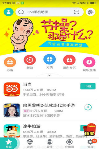 360手机助手不仅有搜索安装应用的功能,他还能管理应用。