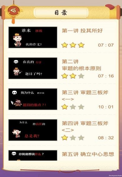 曹操讲作文app的策略,就是将看似无法短期突破的作文,根据命题人命题习惯和阅卷人的喜好,通过对全国十年中高考真题和高分范文的系统分析研究,分解成命题方向、审题、立意、行文逻辑、结构、细节技巧、高频素材等七个模块,投出题人阅卷人之所好,各个模块击破,帮助考生在考前就准备充分,胸有成竹,上考场即可快速组装出一篇优秀考场习作。