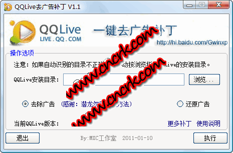 QQLive2011去广告补丁 V1.1 简体中文绿色免费版 QQLive2011去广告补丁是一款可以去除腾讯视频里广告的软件。使用本款软件,再也不会因为在看电影的时候被广告所打扰。