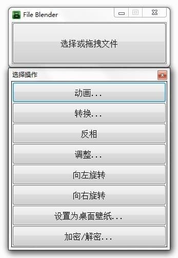 1 将图像文件或MP3文件拖拽到主界面(你可以一次拖拽多个文件)。2 根据您拖拽的文件类型,File Blender 将显示相对应的选项(动作)来提供额外的菜单。单击这些动作按钮就可以继续操作。