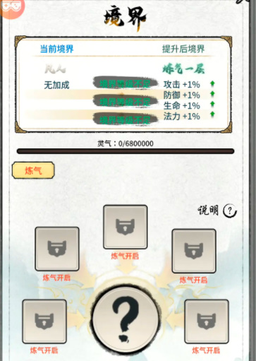 前期灵根提升幅度极大,优先将其提升至极品。禁地是此游戏中唯一能“肝”的地方,每五分钟可进行一次相关操作,若玩家精力足够,能够持续“肝”下去,如此便有机会获得法宝。