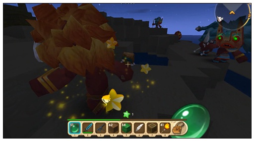方块被破坏后会掉落在一旁(缩小的模型),靠近即可自动拾取掉落
