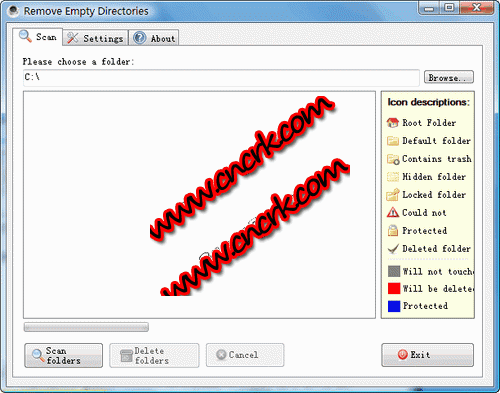 Remove Empty Directories V2.1 英文绿色免费版 remove empty directories是一款专门删除空白文件夹的软件,能自动搜索硬盘上所有的空白文件夹,然后提示用户删除。当卸载程序时,细心的朋友会发现,有些卸载程序只是删除了自己相关的文件,但对于它创建的安装目录则仍留在硬盘上;另外,当剪切、复制或解压缩文件时,也经常留下空白文件夹。时间一长,积攒下的这些空白文件夹会大大干扰我们查找文件的速度和效率。因此,为了避免手动挨个查找、删除的麻烦,我们可以使用remove empty directories来完成。