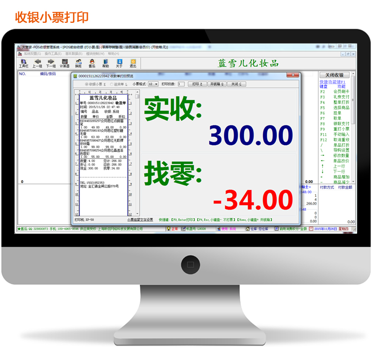 支持:多个收银员、交换班、自动计算销售提成;