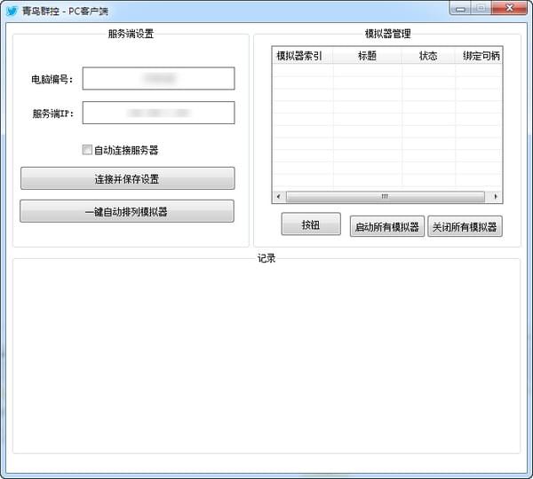 点击“服务端”上的“群控平台”按钮,找到自己的内网ip地址