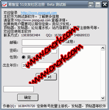 51交友社区账号批量申请器是一款集批量账号申请、单个账号连续发帖发布信息、多账号互发帖子、单个帐号顶贴、多帐号 顶贴、、版块帖子详情查看为一体的批量软件,同时又可以称为账号注册机、发帖机、群发器、灌水机、验证码识别等全能软件。