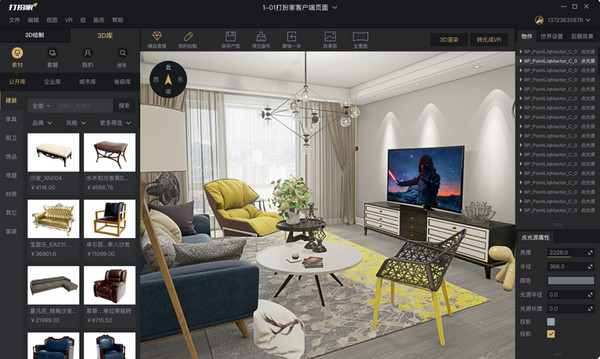 1、打扮家VR家装平台,为用户提供海量的家具。2、选中的家具可以直接放进自己虚拟家中。