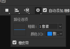 路径线和曲线不再只有黑白两色!您现在可定义路径线的颜色和粗细,使其更符合自己的审美且更加清晰可见。在创建路径时(例如使用钢笔工具),请单击选项栏中的齿轮图标 。现在指定路径线的颜色和粗细。另外,指定在点击之间移动指针时(橡皮带效果)是否需要预览路径段。