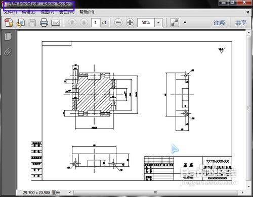 12、打印完毕后我们用adobe reader打开文件看一下转换效果我们把视图旋转了过来,效果还是很好的。有了内置的PDF绘图仪以后转换更加方便了。