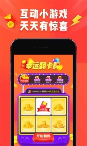 1、互动小游戏 天天有惊喜:每日签到玩转盘,动动手指,玩翻卡牌、刮刮卡互动,就有丰富红包、话费券、优惠券奖励,7天连续签到还可以开宝箱赢红包!