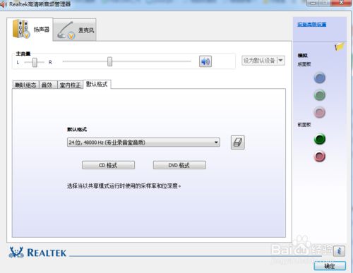 相较于内置的SRSAudioSanbox音频管理器,realtek高清晰音频管理器声音明显醇厚得多;