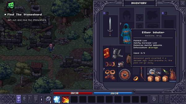《StoneShard》中危机重重,被骷髅的巨剑劈成两半,或者被食尸鬼撕裂喉咙只是众多死法之一。饥渴、伤痛、恐惧、疯狂和各种疾病都有可能给你带来杀身之祸。