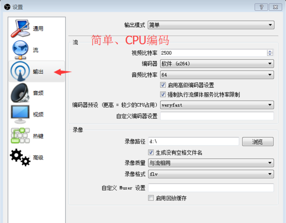 编码使用H264(X264)和AAC。支持英特尔快速同步视频(QSV)和NVENC。