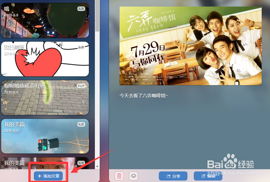 1、发布新的文章:在成功登陆后的页面,左下方有“添加文章”的按钮,点击即可导入照片。