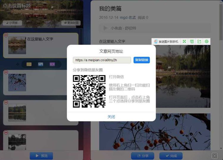 13、用手机扫二维码,在手机中显示的美篇,再发送到朋友圈