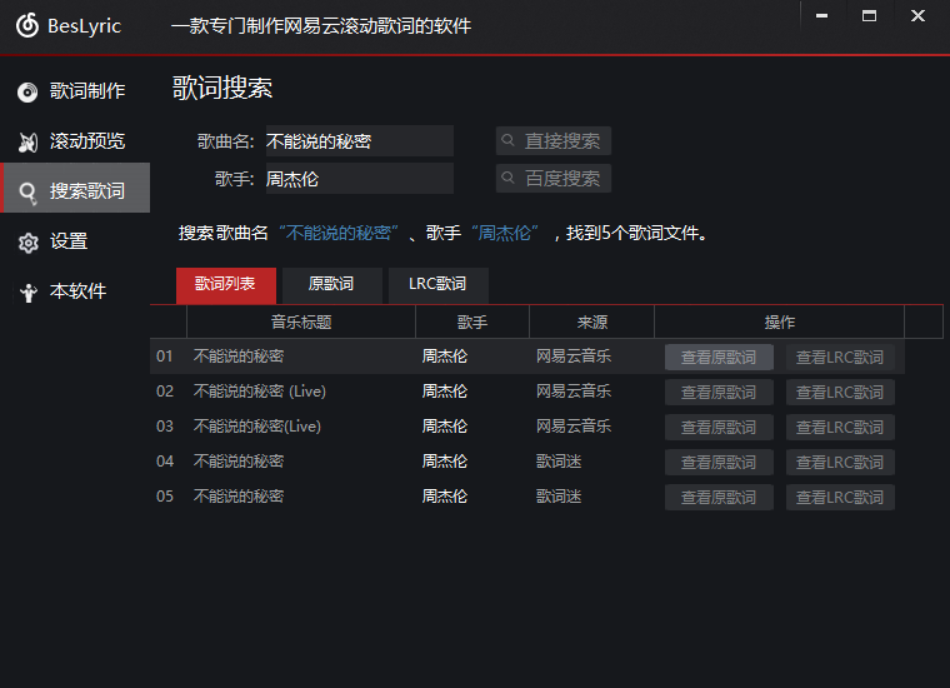 BesLyric,一款专门制作网易云音乐LRC滚动歌词的软件!搜索、下载、制作歌词更方便!哈哈,喜欢网易云音乐,又愁于制作歌词的童鞋有福啦!BesLyric为你排忧解难!