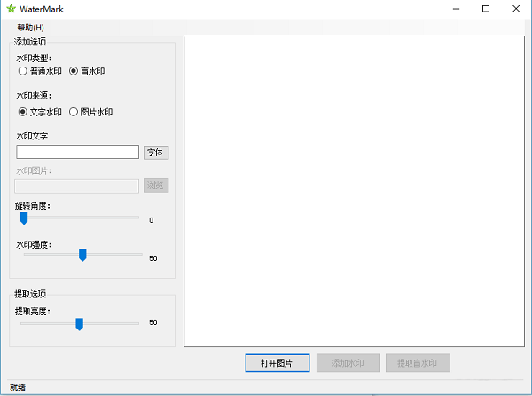 本软件可以通过对图像添加肉眼看不见的水印,便于追溯图片来源。原理是在频域添加数字水印,具有一定的隐秘性,抗破坏能力,且基本不破坏原图图像。灵感来源于前段时间阿里凭截图查到了月饼事件的泄密者,可以添加普通水印和盲水印,添加盲水印的原图长和宽最好是2的N次方,如1024*1024,1024*512等,否则添加水印的时候会自动调整,如果添加水印后图片干扰严重,可以尝试降低水印强度,提取水印时可以调整水印的亮度。【软件功能】