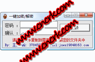 一键加密解密 可以把本磁盘里的所有文件加密 如果不解密码 别人看不到也删不掉 非常方面!!1.把本程序复制到需要加密/解密的文件夹中打开。 2.输入密码,就可完成加密/解密.