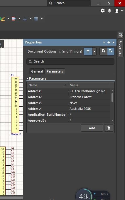2、原理图参数及元件参数设置在默认安装后在右上角的Properties中双击对应元件就会自动弹出来的自收缩菜单或者点开弹出菜单再点击原理图或者元器件也可以,如图熟悉的原理图标题等参数设置在此: