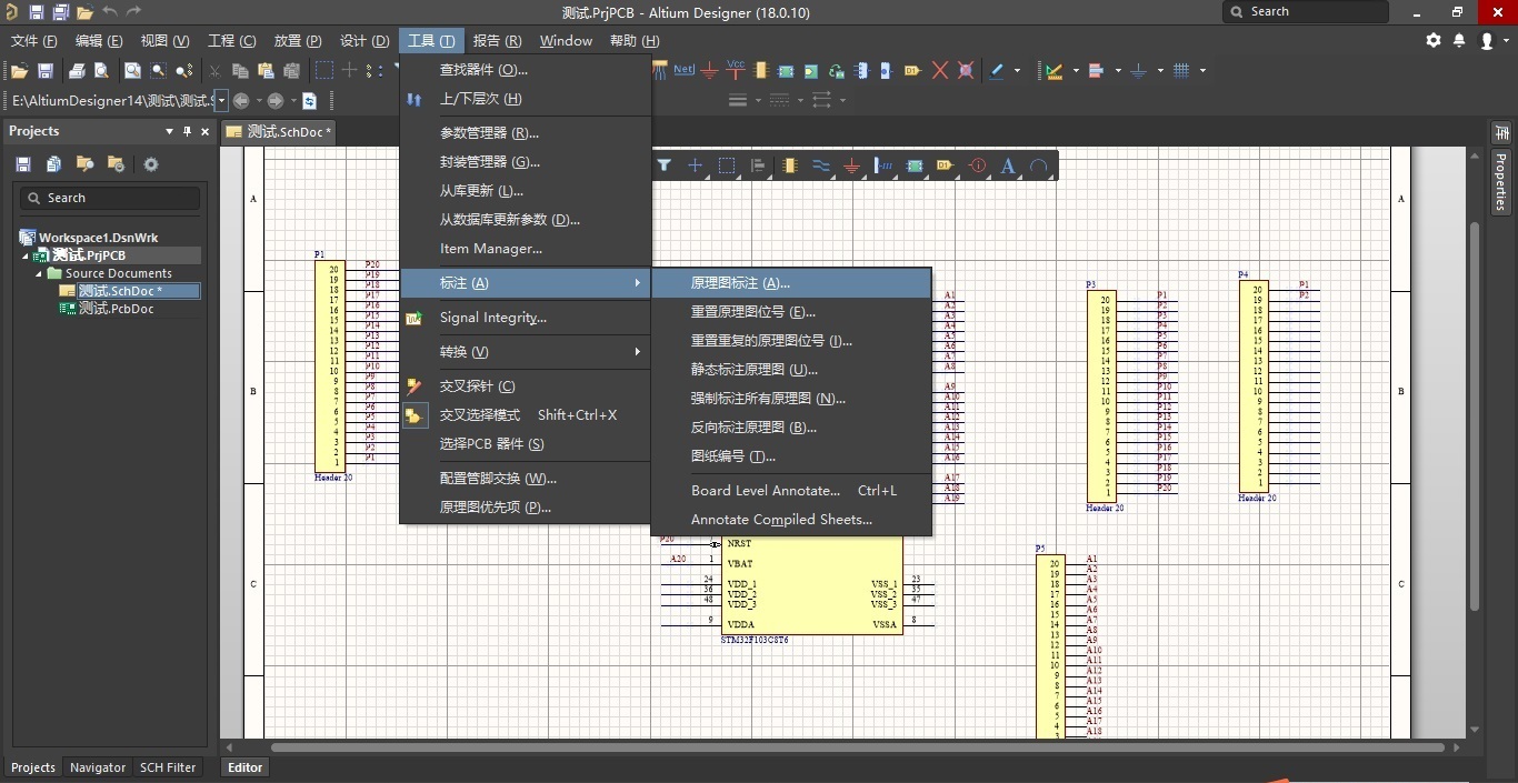 4、原理图元件批量注释在工具下的标注内同时还有原理图和PCB相互选择的交叉选择模式如图:
