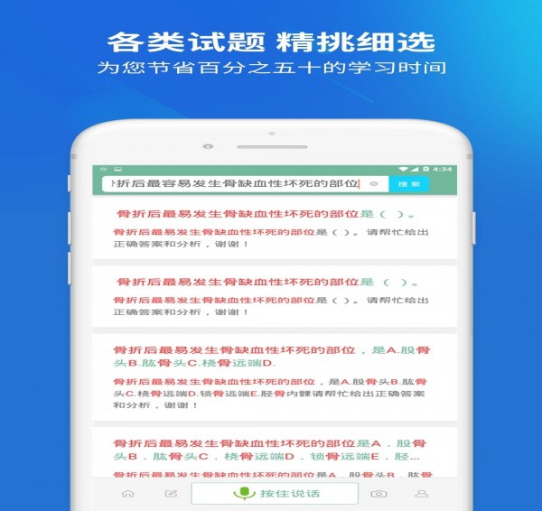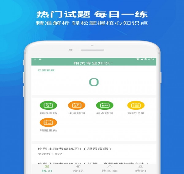 【强大的搜题功能】上学吧外科主治医师题库新增搜题功能,外科主治医师考试中的疑问一搜便知,更支持语音和拍照搜题。【丰富的练习与做题模式】上学吧外科主治医师题库有模拟考场、历年真题练习、每日一练、快速练习、考点练习、考试押题、做题记录等多种学习与做题模式、丰富多样化的陪你一起考外科主治医师。