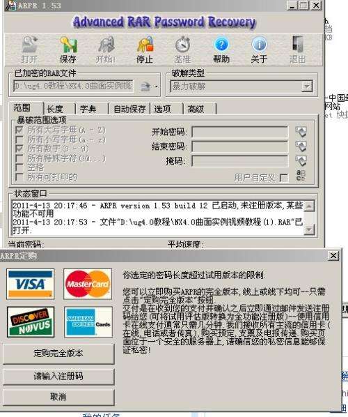1、Arpr软件提供有预估算出密码所需要的时间;2、可中断计算与恢复继续前次的计算。