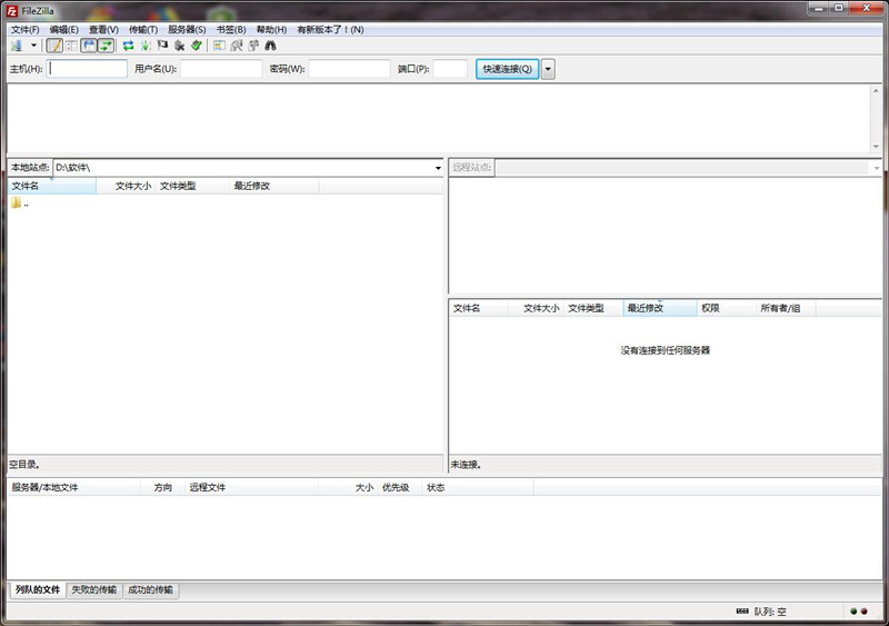 打开Filezilla客户端窗口,如图