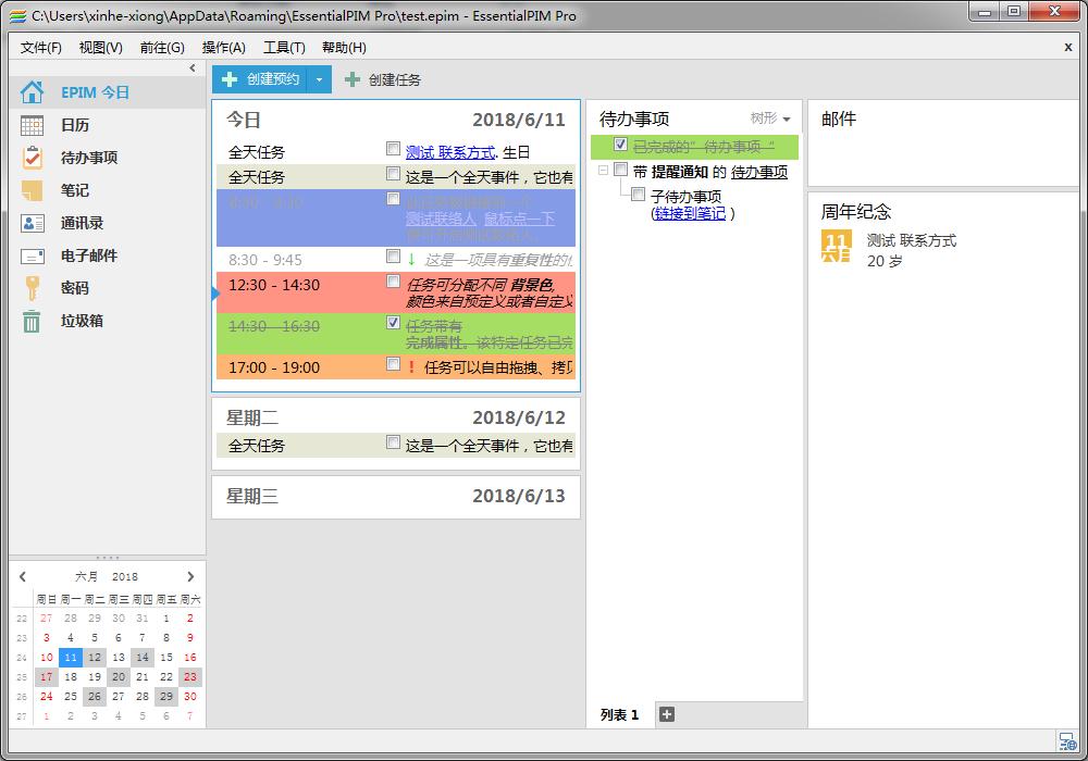 日历,待办事项,备忘录,联系人,密码和电子邮件经过多年的开发和积累,EssentialPIM Windows版本已经成为一款灵活直观、易于使用的个人信息管理软件,便携版本、可扩展的导入导出以及同步特性让您主宰您的所有数据。
