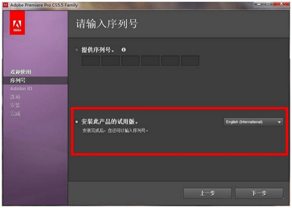 4.开始安装的时候,选择试用选项,无需输入序列号。