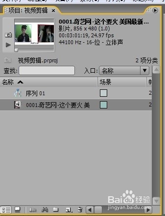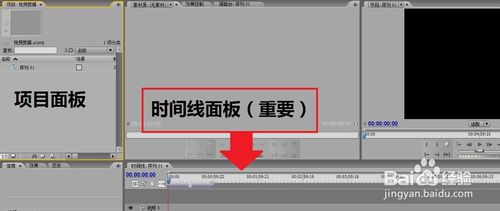 2、注意项目面板和时间线面板,我们剪辑要用到的两个面板