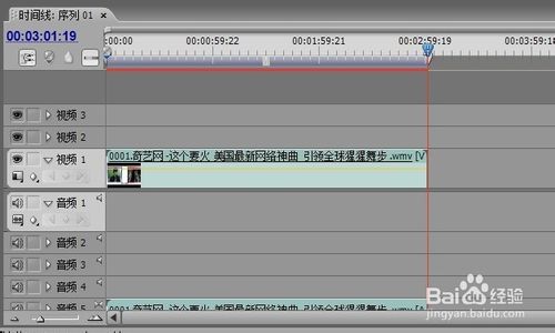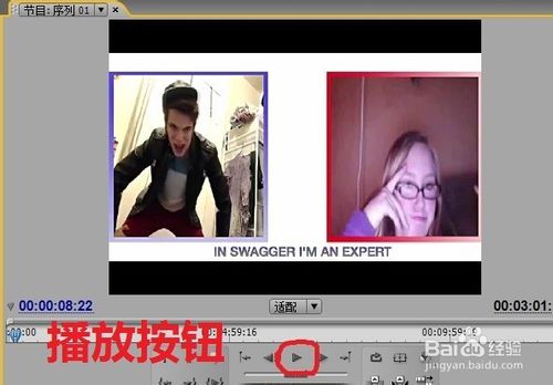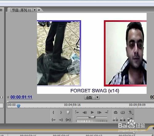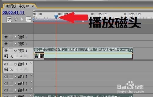 6、拖动播放磁头在节目,在面板可以查看视频,点击一下播放按钮可以预览播放视频