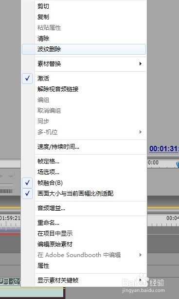 11、在不需要的视频片段右键单击选择【波纹删除】