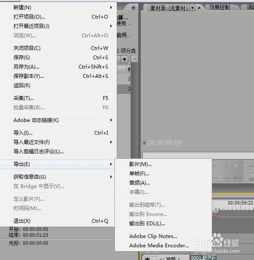 导出视频文件:先选中素材,再选择文件→导出→影片命令