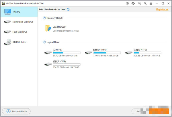 完美的表现MiniTool Power Data Recovery 可以从硬盘,USB 驱动器,存储卡,RAID 和其他存储设备中恢复文档,图片,视频,音频,电子邮件和其他数据。 它可以恢复删除的数据,从格式化/损坏/RAW/丢失的分区中恢复丢失的数据,并在系统崩溃,硬盘错误或故障,病毒攻击,意外断电等情况下恢复数据。