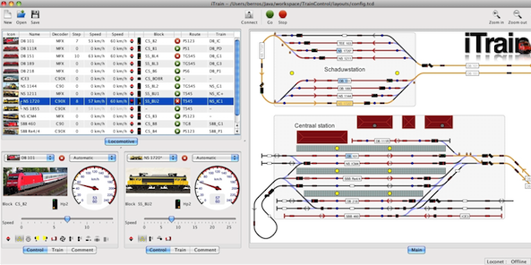 iTrain for Mac现代软件技术可以运行程序在所有主要的电脑操作系统Windows,mac OS X,Linux和OpenSolaris。客户端服务器架构允许额外的电脑作为概述或控制器。交换机与一个可选的布局完全可概述大布局并允许不同的标签不同的看法。仅仅画出布局和分配的自动控制信号,反馈你的块信号没有提供困难规则。可以简单定义路由选择的块。如果你使用的是像中央车站或现代系统ECoS,iTrain将进口所有的loc,投票率和信号定义,这样你就可以更快。