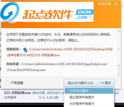 3、若是win10系统进行安装很可能出现下图中的提示信息,点击允许本次操作即可!