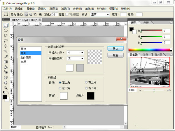 软件配置了专业的图像导航器、直方图、信息栏、颜色栏等面板,方便用户修改和查看图像。