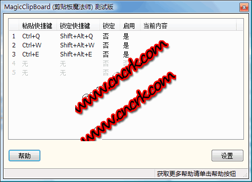 剪贴板魔法师如果因工作需要,每天都要重复复制同样的内容,但 windows的剪贴板只能容纳一条记录,却限制了复制/剪贴功能的发挥。magicclipboard 剪贴板魔法师 能帮到你来提高工作效率,同时还支持自定义快捷键。magicclipboard 旨在帮助您能够更加方便快捷地进行日常的学习与工作。